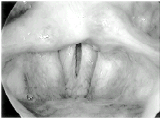 Figura 1 a. Imagem completa das pregas vocais obtida no modo convencional.