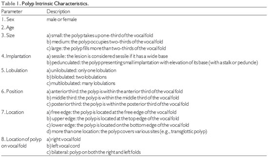 METHODSThis prospective study was conducted from February 2010 to February 2011 using an electronic computerized protocol once the approval of the ethics committee had been obtained (CAEE :0286.0208.000-11). We used the SINPE © electronic protocol with the SINPE© Analyzer for data analysis (5,6,7). The protocol-based software program is capable of storing and manipulating data on a theoretical basis. The SINPE© Analyzer module is used to create reports, graphs, and statistics summarizing the main findings. A specific protocol for laryngeal disorders among the master ENT protocol available in SINPE was used for the analysis; only patients diagnosed with vocal fold polyps were analyzed.