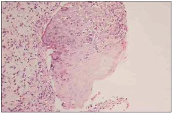 CASE REPORTHere, we report a 27-year-old, single, catholic, female, born in Sierra Taboão and raised in Embu. The patient reported emergence of painful bullous lesions on the nasal ala and left buccal mucosa that displayed sudden and rapid growth (Fig. 1). She sought advice from the emergency dermatology staff 15 days after the onset of symptoms and was hospitalized with suspected bullous disease. General examinations were normal and her leukocyte levels were unchanged. Upon hospitalization, intravenous steroids were introduced but the patient showed no clinical improvement. She displayed further extensive injuries to the trunk, axillae, and vulva as well as rupture of the bullous lesions, which remained as reddened scars.